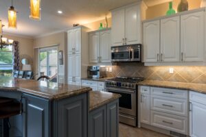 Photographing a bathroom or a room with mirrors present challenges where the tripod and camera gear can be seen in the mirror. We use photo editing techniques and take various angles of photos in such a way to completely remove the tripod off of the mirror.